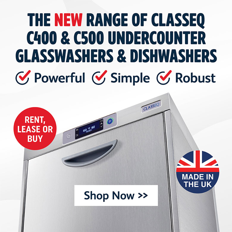 Classeq has unveiled its new range of undercounter dishwashers and glasswashers following many years of research, development, and testing by the Staffordshire-based manufacturer. The range of new machines, the Classeq C400, C400WS, and Classeq C500, C500WS, are described as ‘powerful creations made wonderfully simple.’