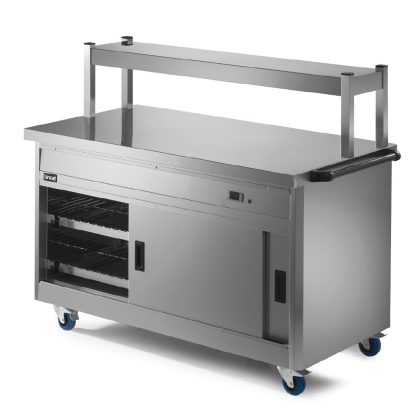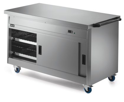 - Fan assisted hot cupboard provides even heat distribution, fast heat up and recovery times, and lower energy usage. Four shelf positions allow adjustment to meet individual needs.