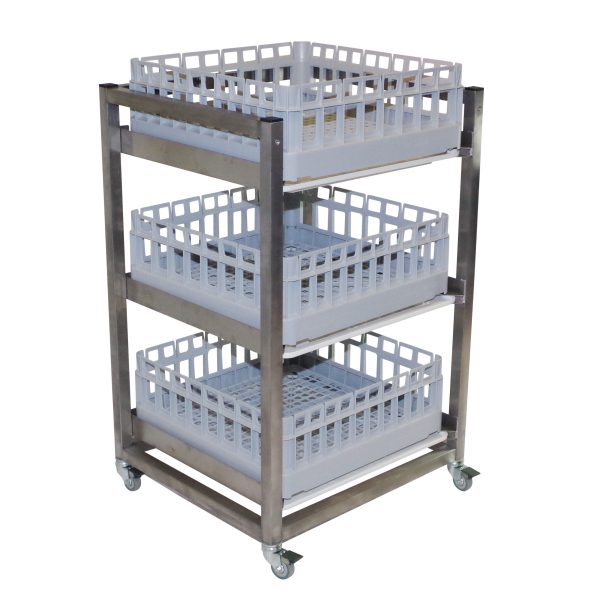 RACK50 is a 3 Tier Storage Rack from Barcare designed to hold 500mm square glasswasher baskets offering you safe, hygienic and versatile storage.