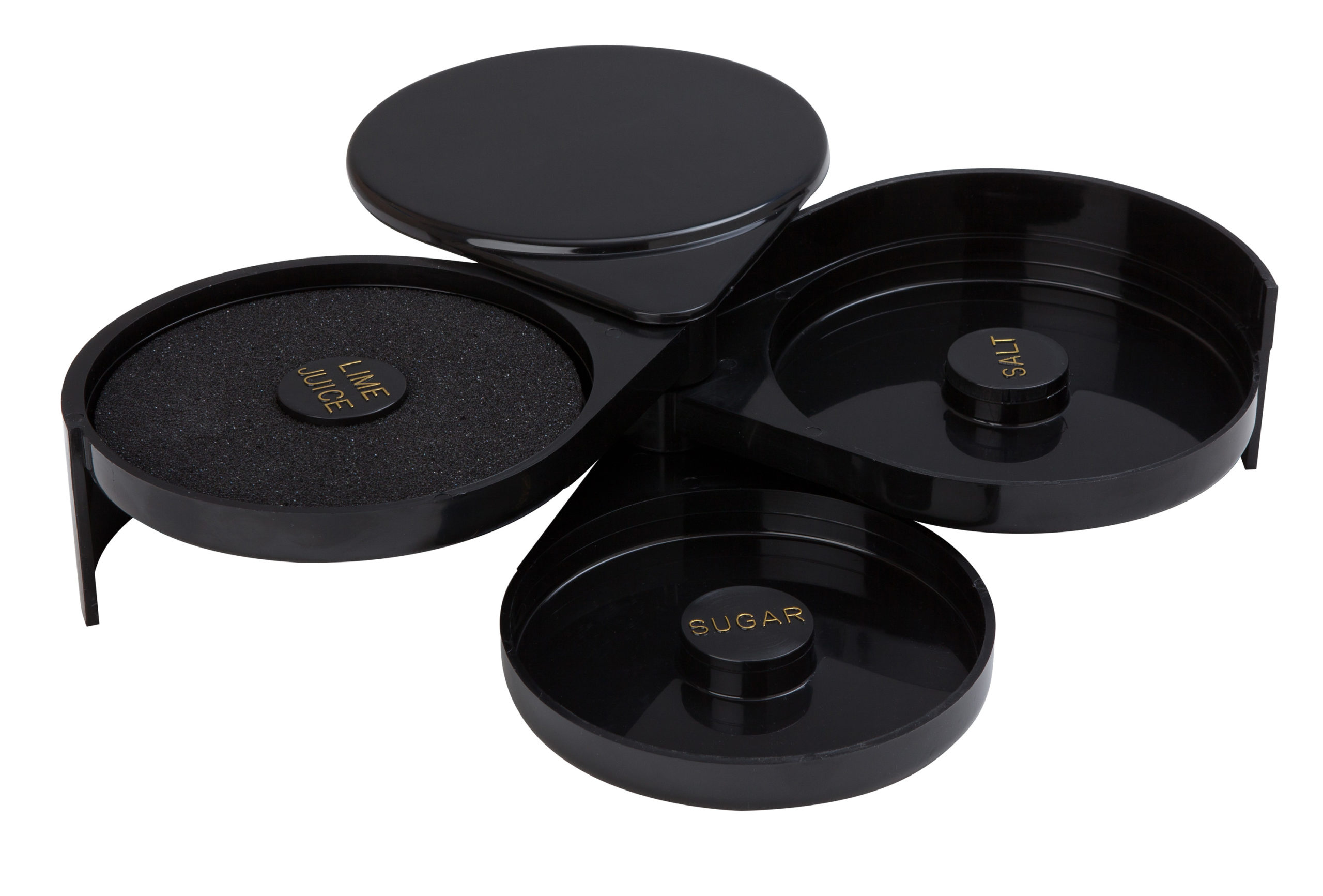 This 3 Part Glass Rimmer, made from food safe black ABS, is an essential accessory used in professional bars for the crafting of cocktails. Simply dip the rim of the glass in lime juice and then in sugar or salt adding an authentic decoration to your cocktail glass. The separate compartments fold together for compact storage, reducing cross contamination and mess. The sponge pad in the Lime Juice section is replaceable (Stock Code: 3598)