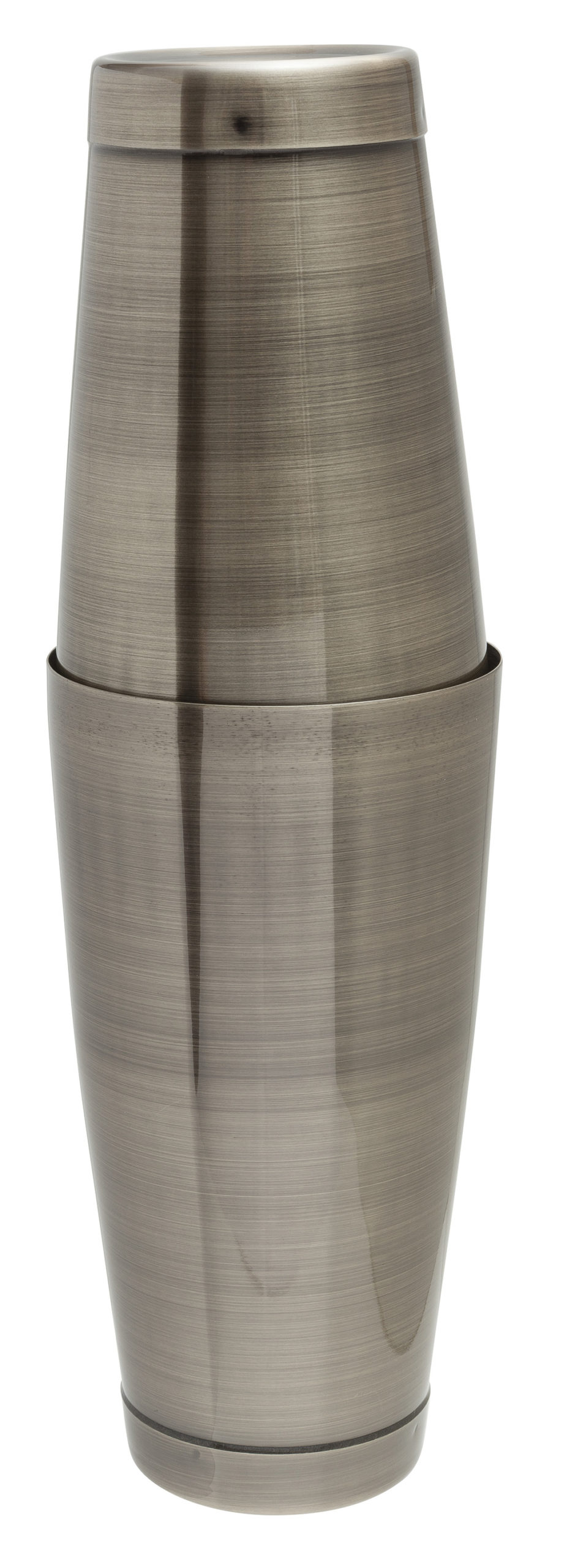 This Antique Brass 18oz Tin on 28oz Tin Set is used by Professional bartenders in the crafting of cocktails. The perfect solution when crafting outside of the cocktail glass this robust, corrosion resistant Can set is designed to improve the overall presentation & theatre of cocktail creation.