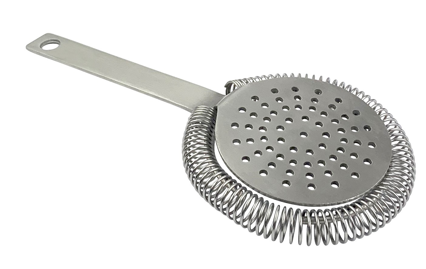 The Euro Cocktail Strainer is a robust stainless steel strainer used by professional bartenders in the crafting of cocktails to remove ice and muddled fruit from the mixer container to the cocktail glass, leaving an attractive smooth, bit free drink.