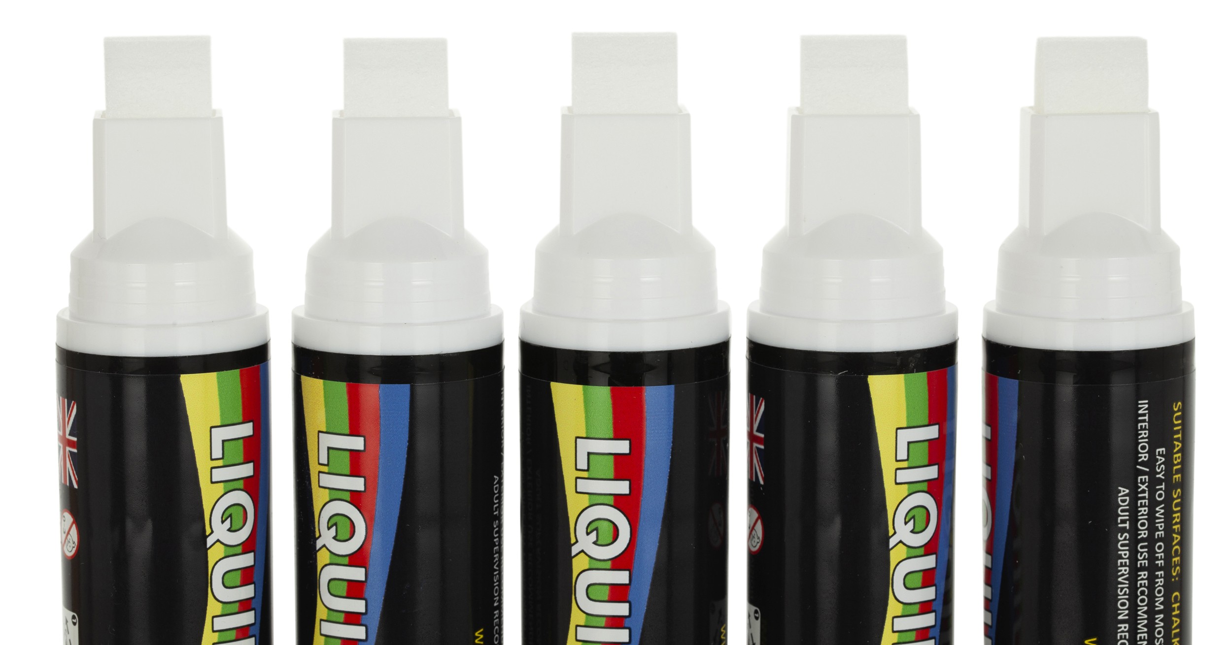 These 15mm Chisel Tip Chalk Pen White are non-toxic, water-based marker pens designed for writing on non-porous surfaces such as blackboards, mirrors, chalkboards, whiteboards and glass surfaces. Suitable for both indoor and outdoor use these chalk pens are a great way to advertise daily specials to your customers then simply wipe and re-write the next day….it’s that easy!