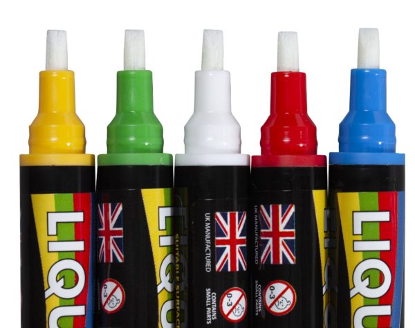 These 6mm Chisel Tip Chalk Pen Mixed Colours are non-toxic, water-based marker pens designed for writing on non-porous surfaces such as blackboards, mirrors, chalkboards, whiteboards and glass surfaces. Suitable for both indoor and outdoor use these chalk pens are a great way to advertise daily specials to your customers then simply wipe and re-write the next day….it’s that easy!