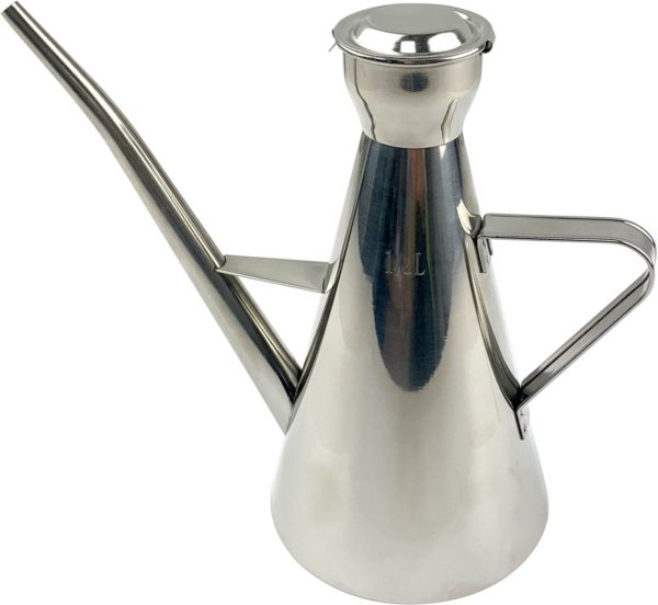 This polished stainless steel oil pot is perfectly designed to look stylish and allow the controlled drizzling of a variety of different oils.