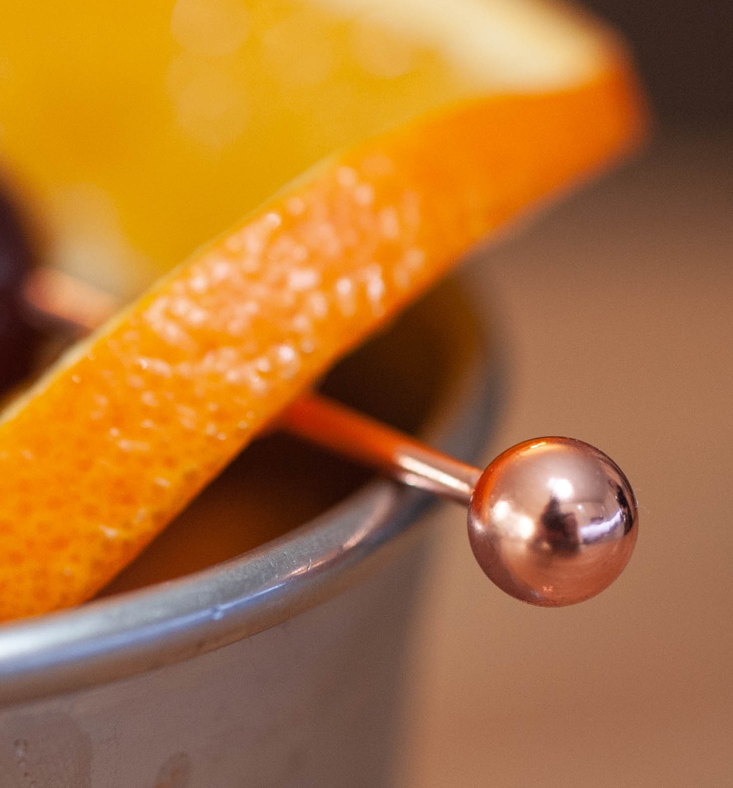 Used by Professional bartenders in the crafting of cocktails these copper plated Ball garnish picks add excitment & flare, improving the overall presentation & theatre of cocktail creation.