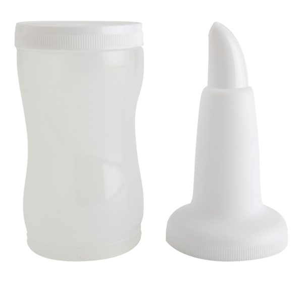 Air intake hole on shoulder of top prevents blockages and allows smooth flow of juice from angled nozzle