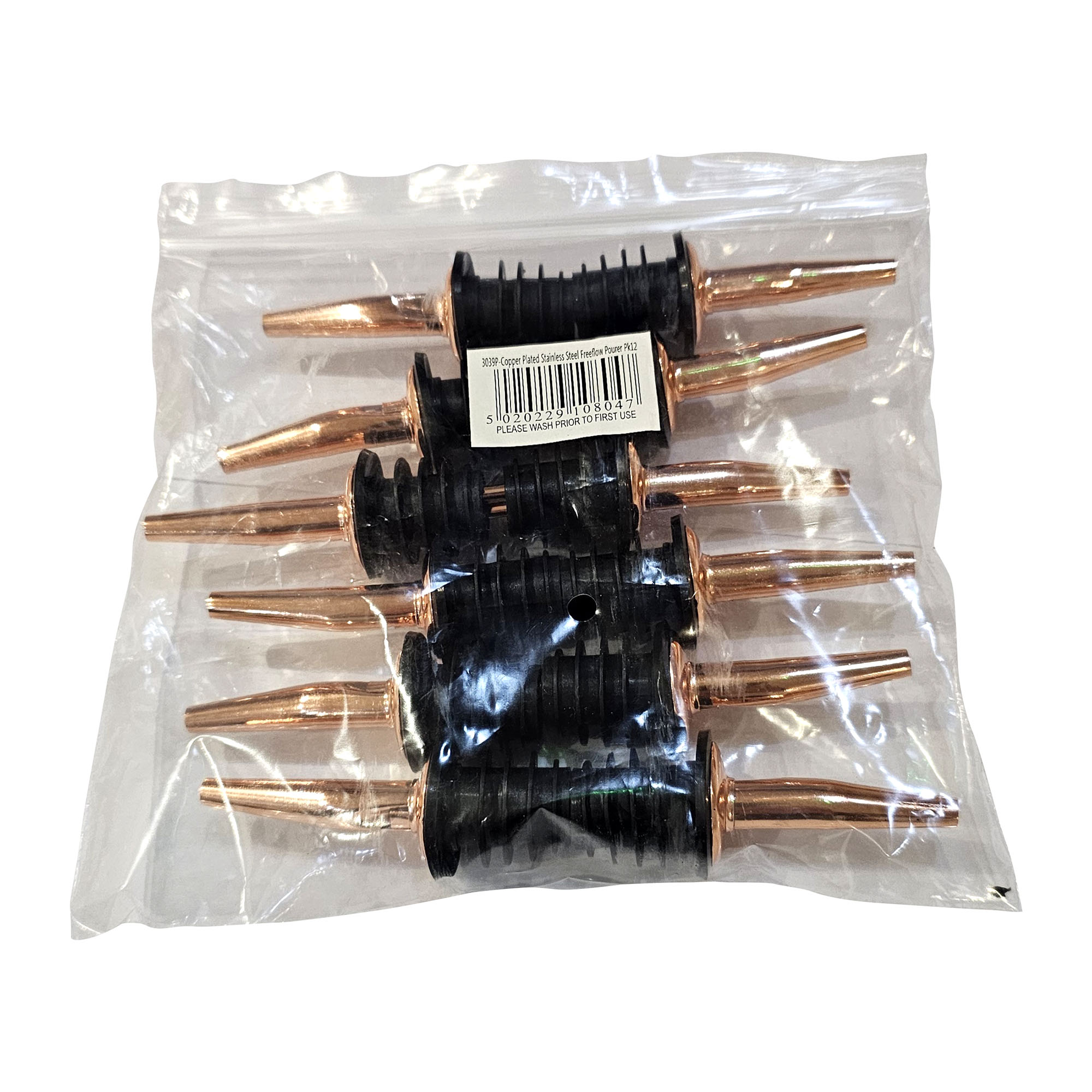 This Freeflow pourer Copper is stylishly designed for use with juices or spirits and dispenses a medium speed pour giving your staff a more accurate aim when filling thimble measures and shot glasses. The rubber bung ensures a secure fit to the bottle letting you pour drinks safe in the knowledge there will be no spillage. Sold in a pack of 12 you will be able to use these trendy pourers on multiple drinks. Ideal for use within the pub, bar and restaurant trade.