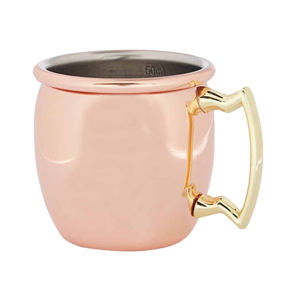 This Copper curved professional cocktail mini jigger mug is lined at 10ml, 25ml, 35ml & 50ml & 60ml to brim, allowing bartenders to quickly craft cocktails. Ideal for use by pubs, clubs and bars.