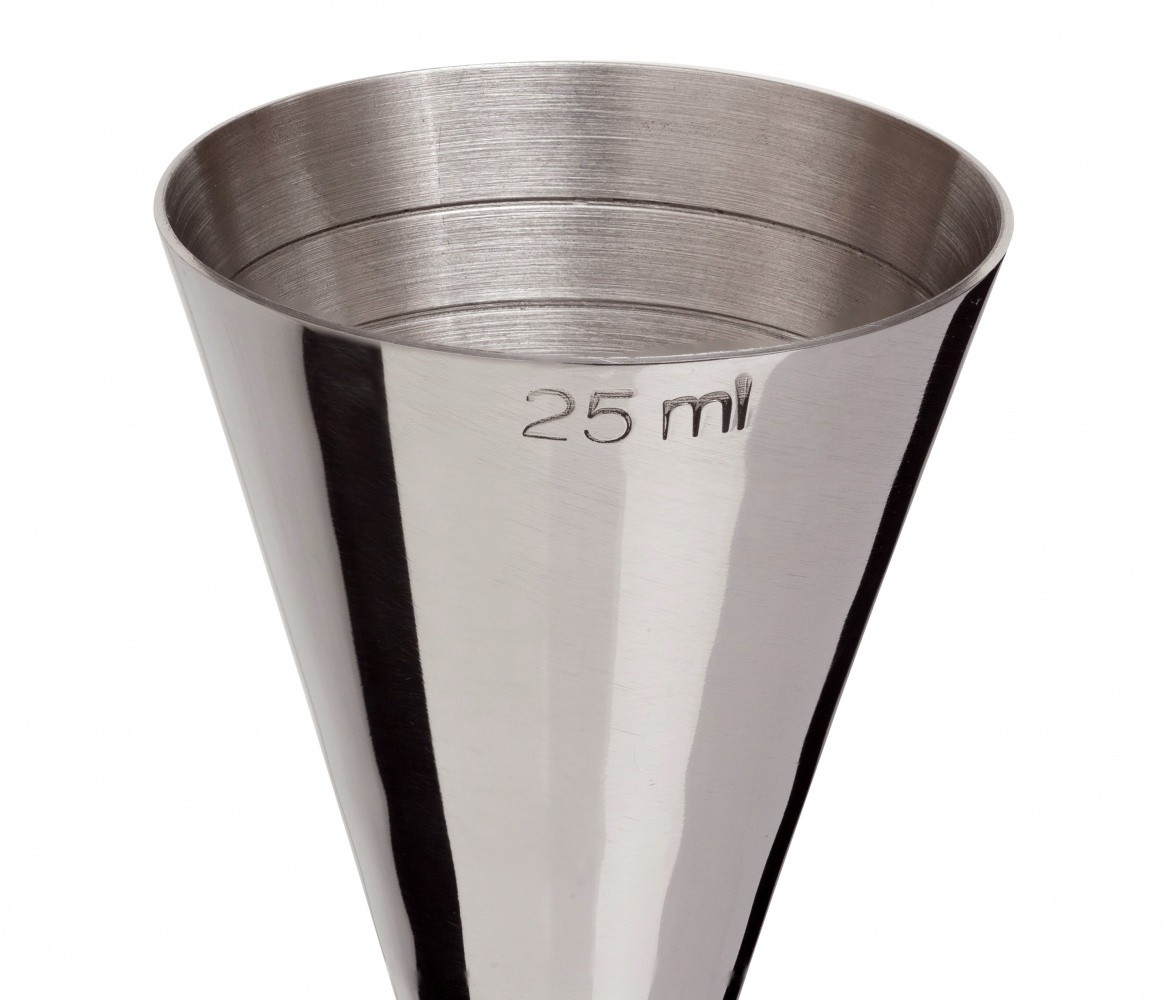 This Mezclar Preciso multi-measure professional bar jigger is a double sided measuring cup. The 25ml cup has markings every 5ml and the 50ml cup has markings every 10ml, allowing bartenders to quickly mix cocktails by using both sides of the jigger. Ideal for use by pubs, clubs and bars.