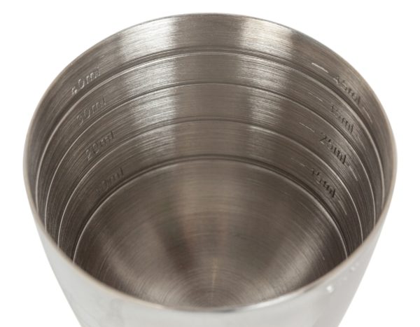 The Grail Jigger is a professional single sided jigger that measures 10ml to 50ml in increments of 5ml. Designed for flair bartenders looking to expand their craft skills and creativity. Nickel plated to withstand the day-to-day wear & tear of a busy bar it also helps to reduce corrosion. Ideal for use in pubs, clubs and bars.