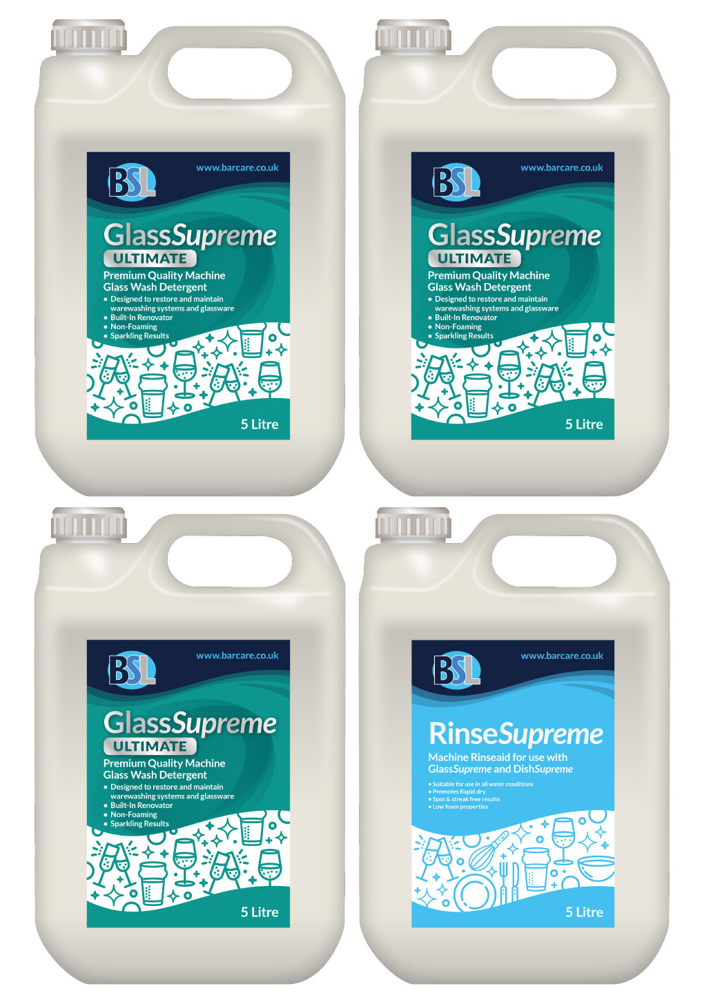 Achieving super clean, spotless wash results on glassware is of utmost importance. After all, glasses serve as the packaging for your saleable beverage, and if the packaging is subpar, it can significantly affect your wet sales and reputation . In the case of commercial glasswashers, they work by pumping water over the contents in the basket. However, the key to obtaining excellent results lies in the quality of the chemicals you select to use with your machine. Choosing poor-quality chemicals will inevitably lead to an unsatisfactory outcome. That’s where GlassSupreme Ultimate comes into play. It stands out as a premium glass washing detergent explicitly designed for use with commercial glasswashing machines. Not only does it provide fantastic hygienic washing results for your glassware, but it also comes with built-in renovate. This ensures that your glasswasher machine remains in top condition, extending its lifespan. GlassSupreme Ultimate not only takes care of your glassware but also treats your machine with kindness, making it an ideal choice for any commercial glasswashing needs.