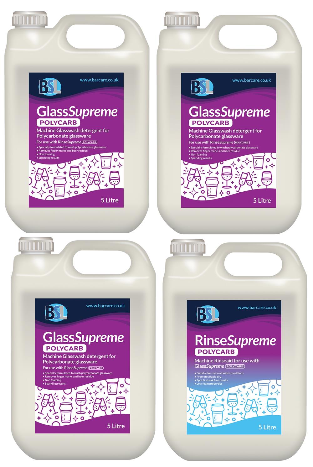 3 x 5Ltr GlassSupreme PolyCarb Glasswash Detergent