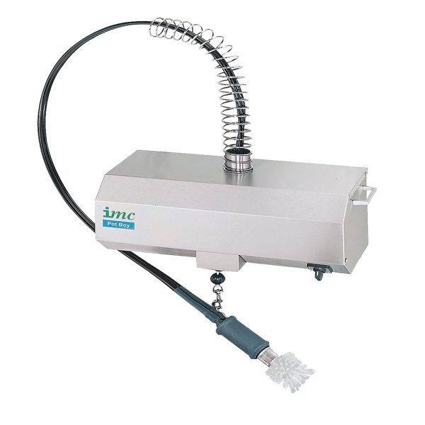 Quick and easy to use, with low running costs, Pot Boy can be mounted over a sink unit, or supplied with a trolley to allow cleaning of fixed catering equipment, such as griddles and bratt pans in-situ. Additional features include a wall-mounting plate, to save on counter space, and a pneumatic, foot-operated switch, so the unit can be switched on and off easily, without the need for hand contact.
