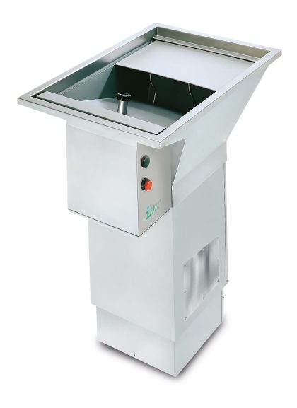 It is suitable for tough waste – red meat bones, cauliflower stalks and fish skins. The free-standing unit can be welded into tabling with a E30/096 hopper rim, for quick loading.