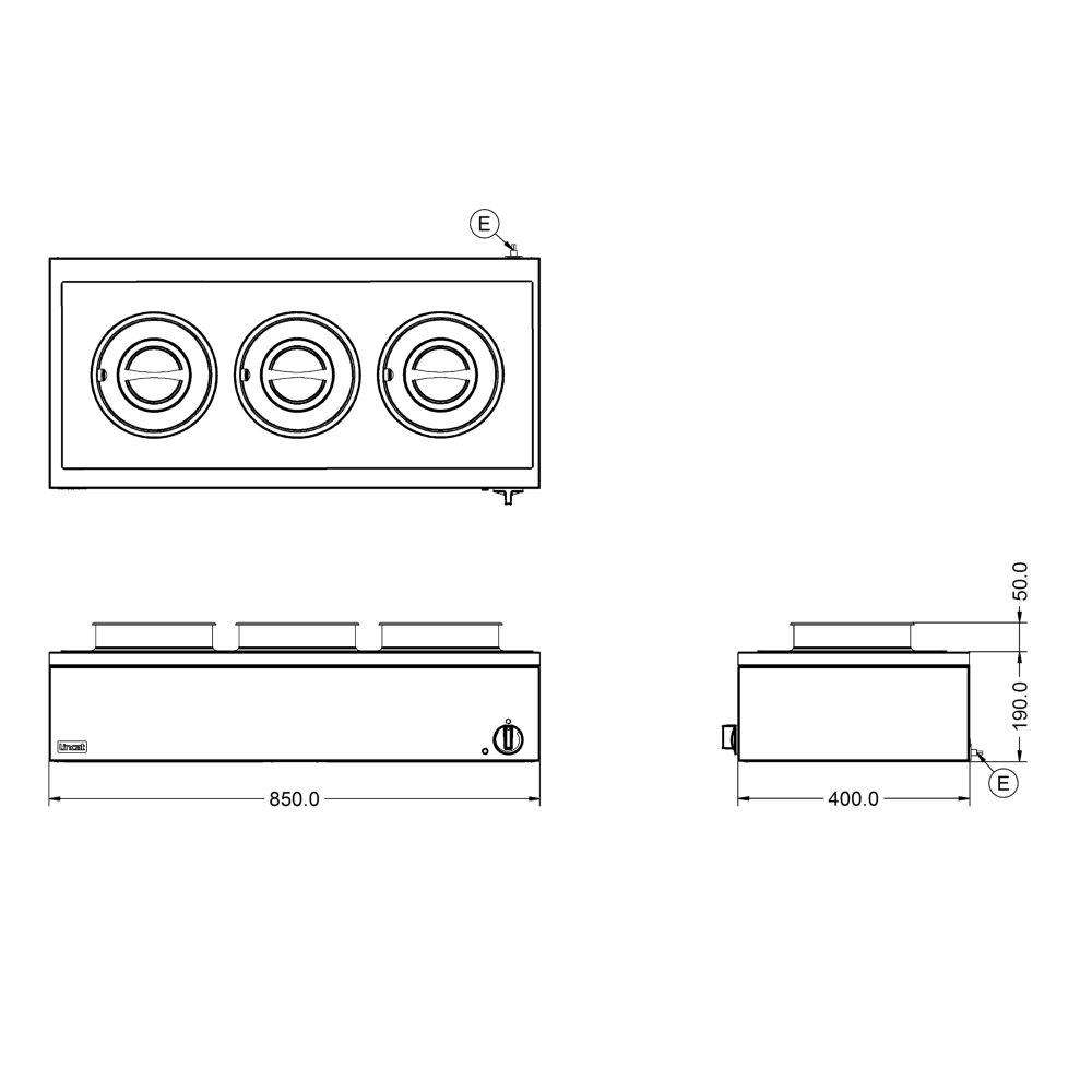 Lincat Lynx 400 Electric Counter-top Bain Marie – Dry Heat – inc. 3 x Round Pots – W 850 mm – 0.75 kW