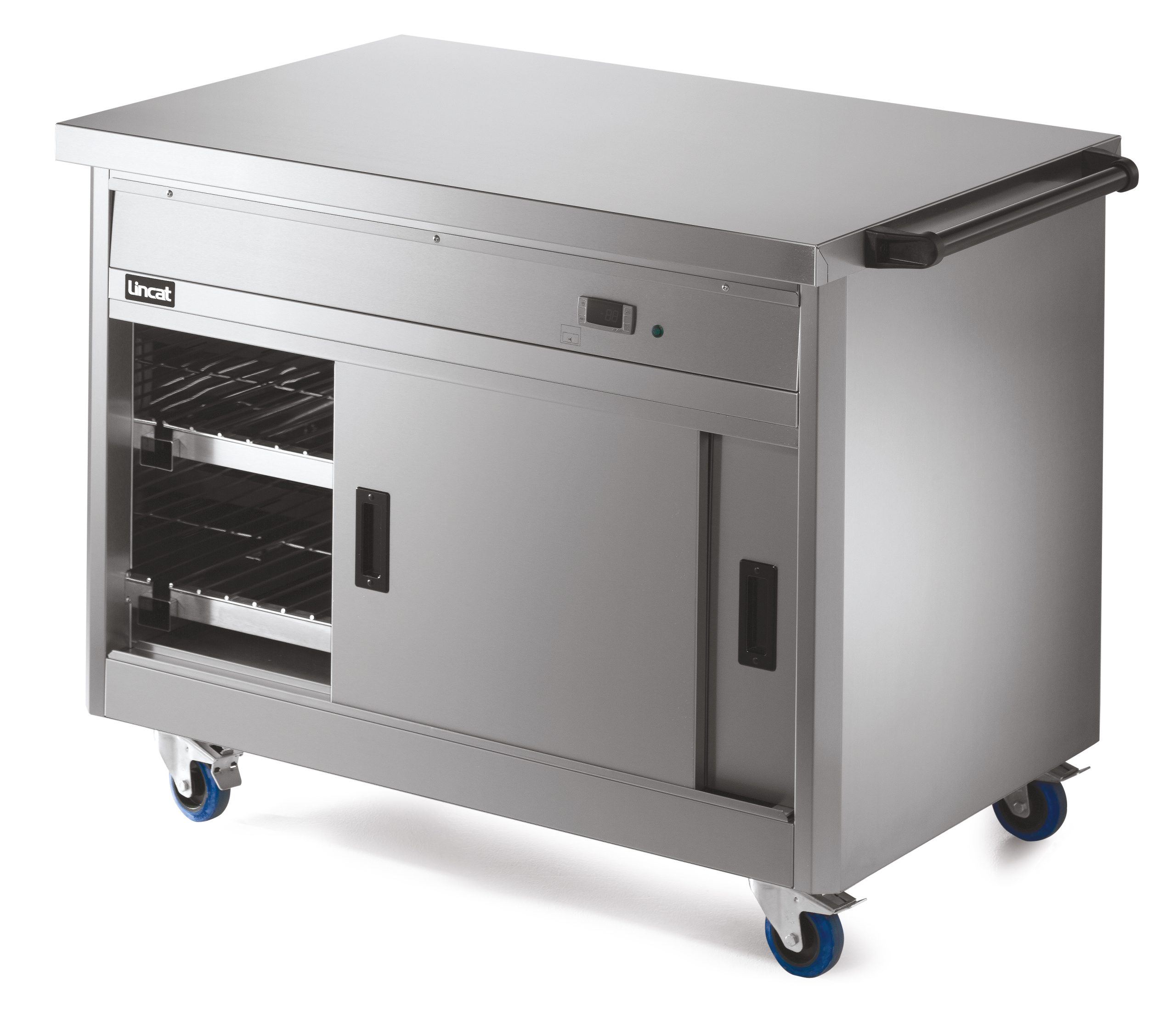 Helping to cater in demanding environments such as cafeterias, canteens and restaurants, the Panther 800 Series Hot Cupboard is perfect for plating and garnishing and as a pass to front of house staff, while it also provides extra workspace or can be used as a mobile workstation. The unit is fan assisted, providing even heat distribution, fast heat up and recovery times, and lower energy usage. Built for efficiency, the model has sliding doors to both sides, providing enhanced workflow capability. Fully 1/1 GN compatible, this unit accomodates 3 x 1/1 GN containers up to 150mm deep, while the thermostatically controlled bain marie top can be operated with wet or dry heat. An accurate digital electronic control of the hot cupboard temperature, adjustable between 20 and 99 °C, ensures compliance with food hygiene regulations.