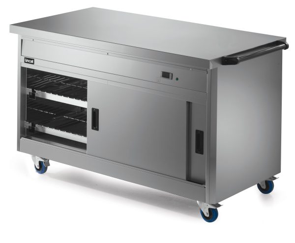 Helping to cater in demanding environments such as cafeterias, canteens and restaurants, the Panther 800 Series Hot Cupboard is perfect for plating and garnishing and as a pass to front of house staff, while it also provides extra workspace or can be used as a mobile workstation. The unit is fan assisted, providing even heat distribution, fast heat up and recovery times, and lower energy usage. Fully 1/1 GN compatible, this unit accomodates 4 x 1/1 GN containers up to 150mm deep, while the thermostatically controlled bain marie top can be operated with wet or dry heat. An accurate digital electronic control of the hot cupboard temperature, adjustable between 20 and 99 °C, ensures compliance with food hygiene regulations.