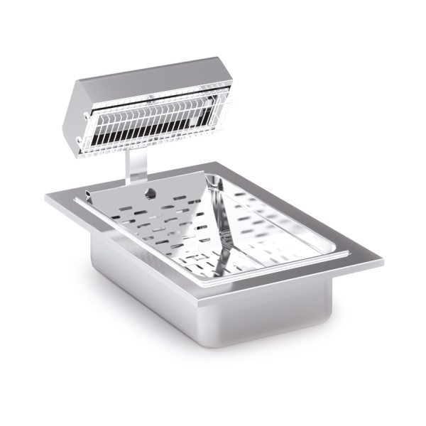 Keep chips and other fried food piping hot and in optimum condition with the FriFri Silofrit Built-In Chip Scuttle. Food is heated both from above via an infra-red lamp, and below via the drain plate. Designed to be durable, the chip scuttle is made from 304 grade stainless steel and has a removable gastronorm and drain plate for easy cleaning.