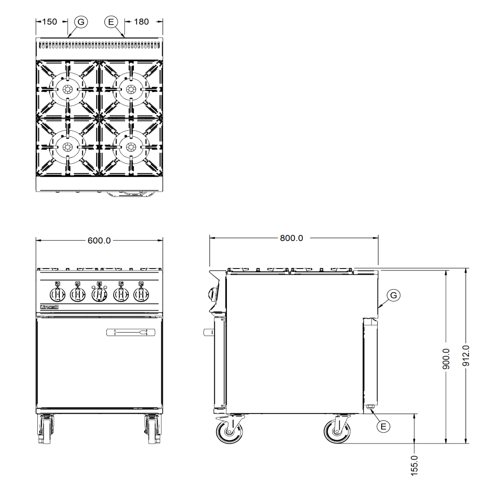 Be the first to review “Lincat Opus 800 Dual Fuel [Propane Gas] Free-standing Oven Range – 4 Burners – W 600 mm – 26.8 kW”