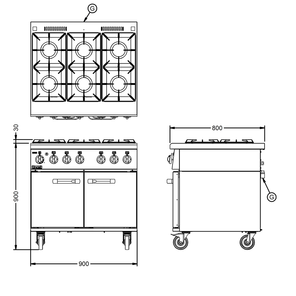 The high quality Phoenix 6 Burner Gas Oven range offers power, durability, and excellent value for money. The oven range is ideal for care homes and schools, as well as smaller pubs and restaurants. Made with quality stainless steel, the powerful oven comes with mighty burners and a fully pressed hob for easy cleaning, while its large 4 x 1/1GN capacity means you can cook four different foods simultaneously.