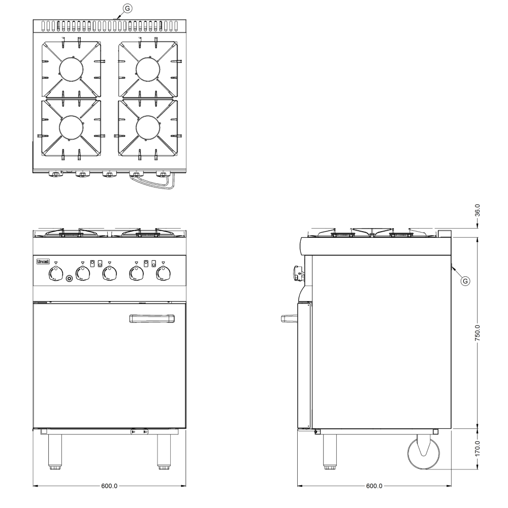 Cook a variety of delicious dishes with the powerful Silverlink 600 Gas Oven Range. The four gas burners not only offer power, but also come with a flame failure device for added safety. The oven range, perfect for cafe bars, care homes and small restaurants, has a high power gas oven, and also comes with a low level flue which maximises the working area and enables you to use large stock pots. The fully pressed and sealed hob tops make for easy cleaning, and there are four shelf positions with two removable shelves.