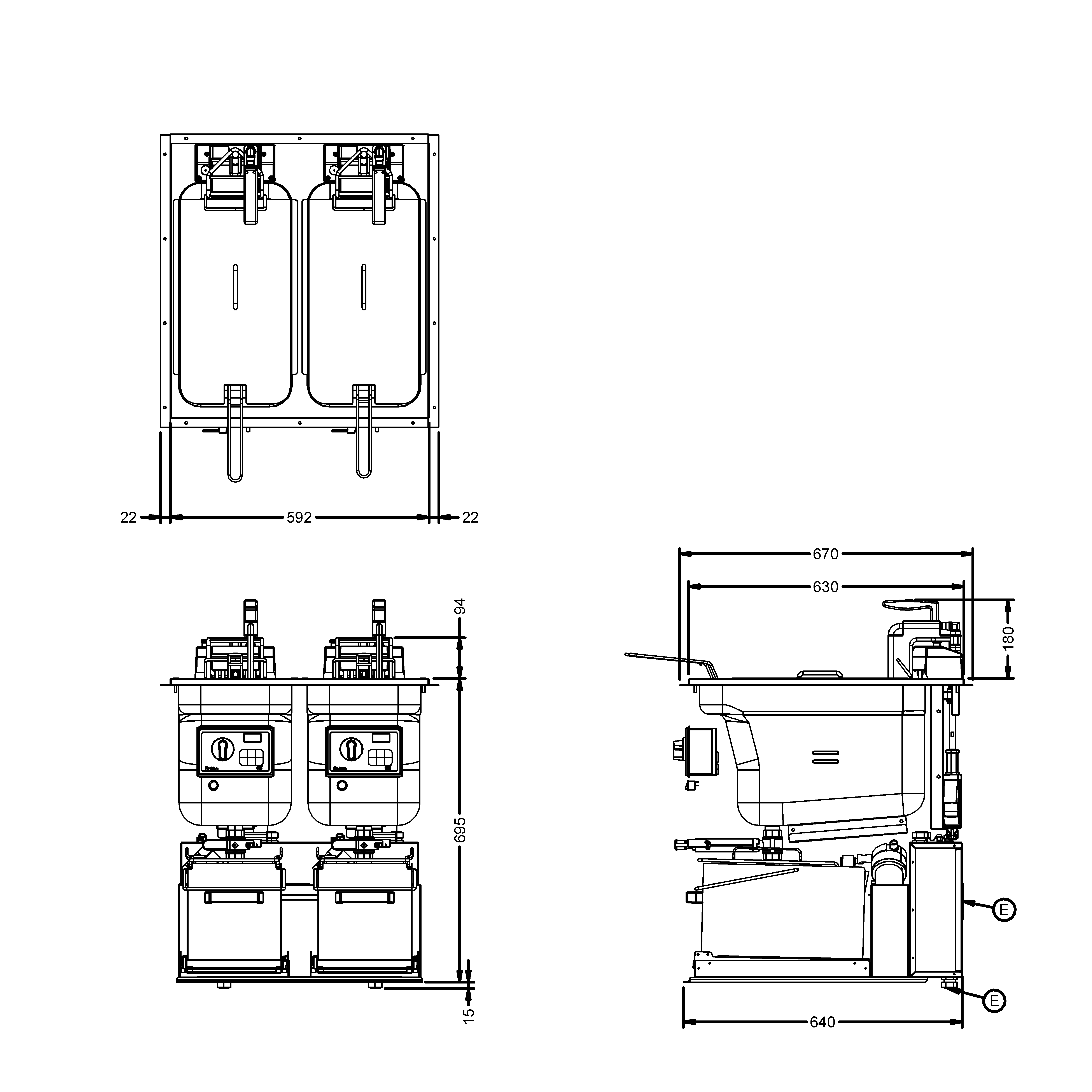 FriFri Precision 622 Electric Drop-in Twin Tank Fryer – 2 Baskets – W 600 mm – 2 x 15.0 kW
