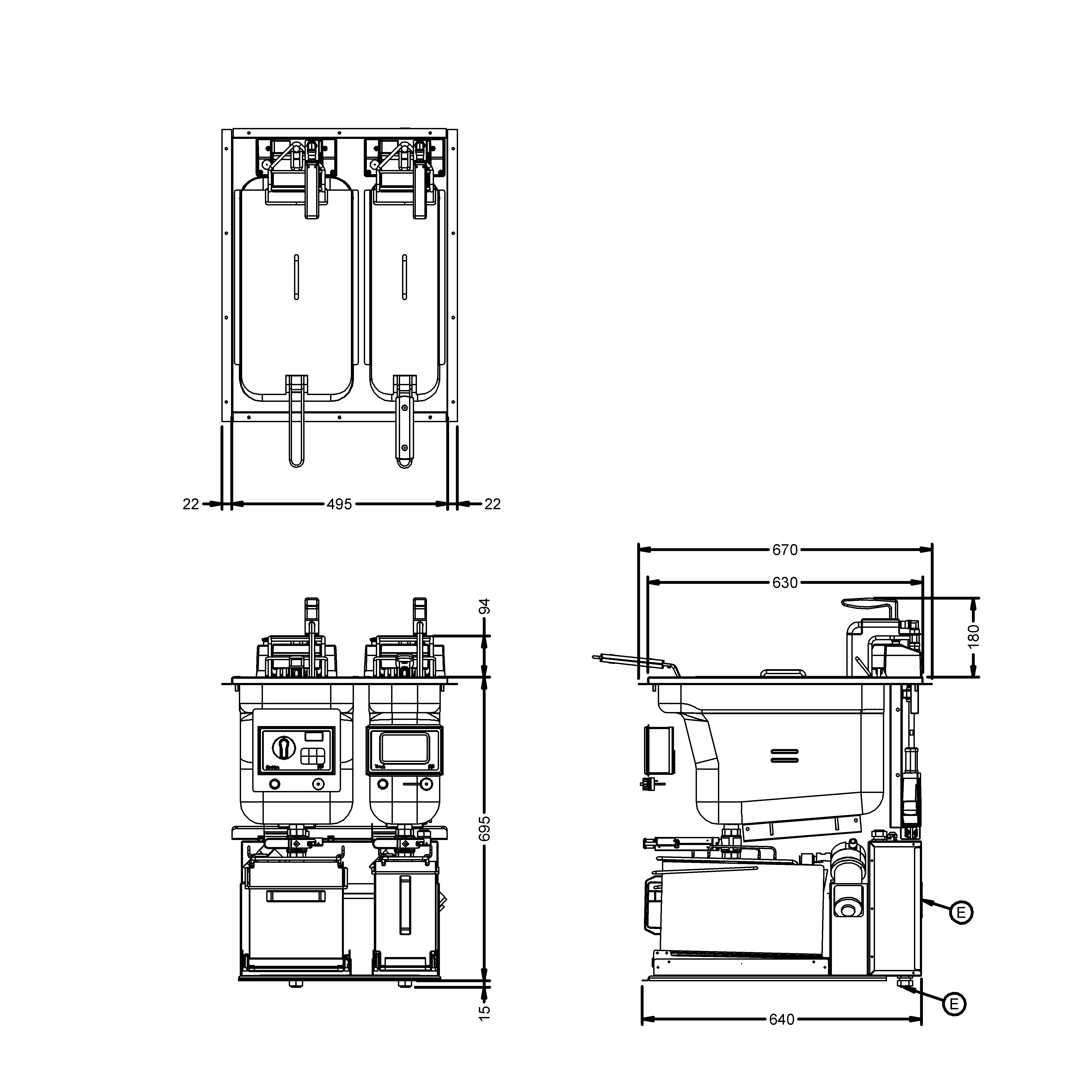 For optimum oil segregation, fryers with two or three tanks can be supplied with separate oil pumps.