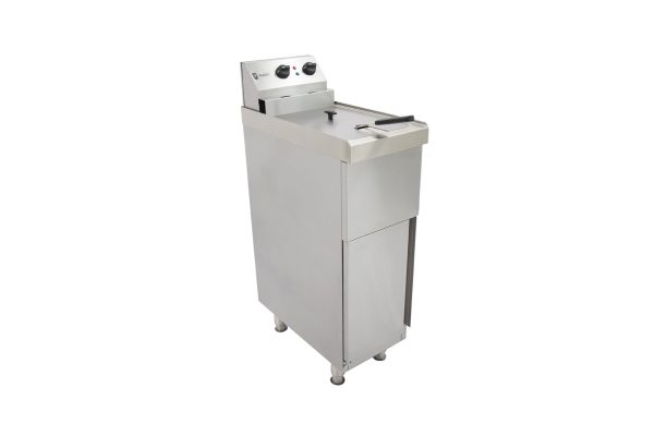 Made in the UK the Parry NPSPF6 Single Pedestal Electric Fryer is strong, long-lasting and easy to use. Manufactured for busy commercial kitchens, with simple controls and a sturdy basket. This freestanding fryer is great for cooking chicken, chips, and fish. These electric fryers are built with high-grade stainless steel and you can easily access the drain tap for cleaning thanks to its hinged front panel.