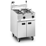 Fry delicious food accurately with this Opus 800 Free Standing Twin-Tank Gas Fryer which comes with two independent fryer tanks for greater versatility. The commercial gas fryers boast a dual-pumped oil system which allows the oil to be filtered and ready to use again in less than five minutes. The two-stage filtration system not only extends oil life by up to 75%, but also saves you money. Ideal for a variety of busy commercial kitchens, whether it’s a large pub or a restaurant, the fryer features convenient piezo ignition and has externally fired heating which allows for easy access for cleaning the tanks.
