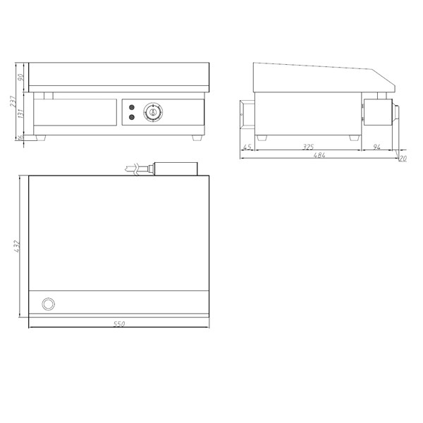 The griddle includes a detachable drip tray that collects grease and food debris during cooking. Removing the tray is quick and simple, keeping the work area clean and safe. Rubber feet provide stability on counters, reducing the risk of unwanted movement during busy periods.