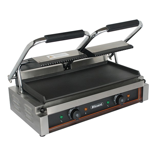 The Blizzard BRSCG2 is a reliable, hard working double contact grill. Its robust stainless steel construction is designed to cope in the busiest of professional kitchen environments. Cast iron top and bottom grill plates ensure even and fast cooking. Simple controls makes this grill easy to use and with a removable drip tray collected fat can be emptied with ease when required. A great option for any commercial kitchen.