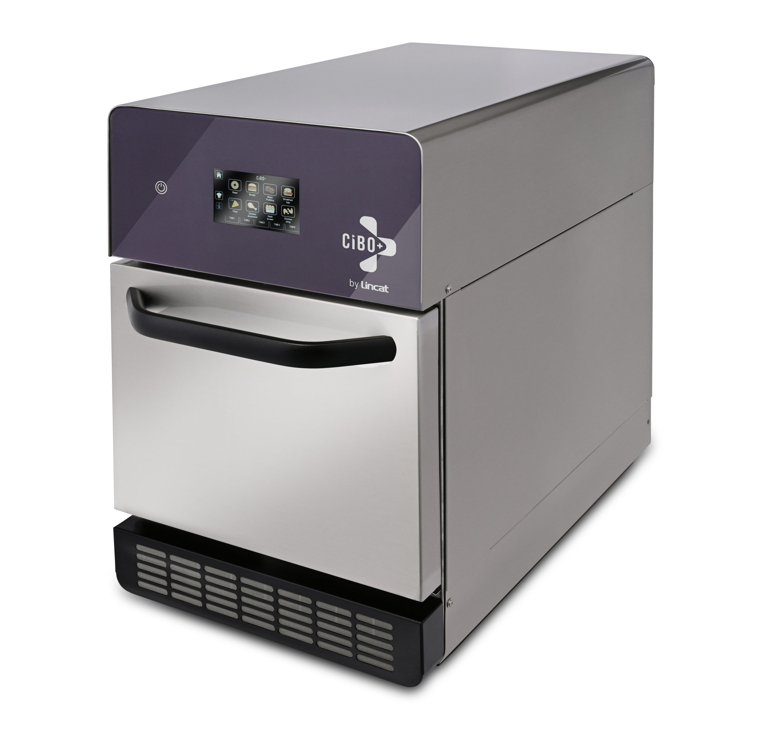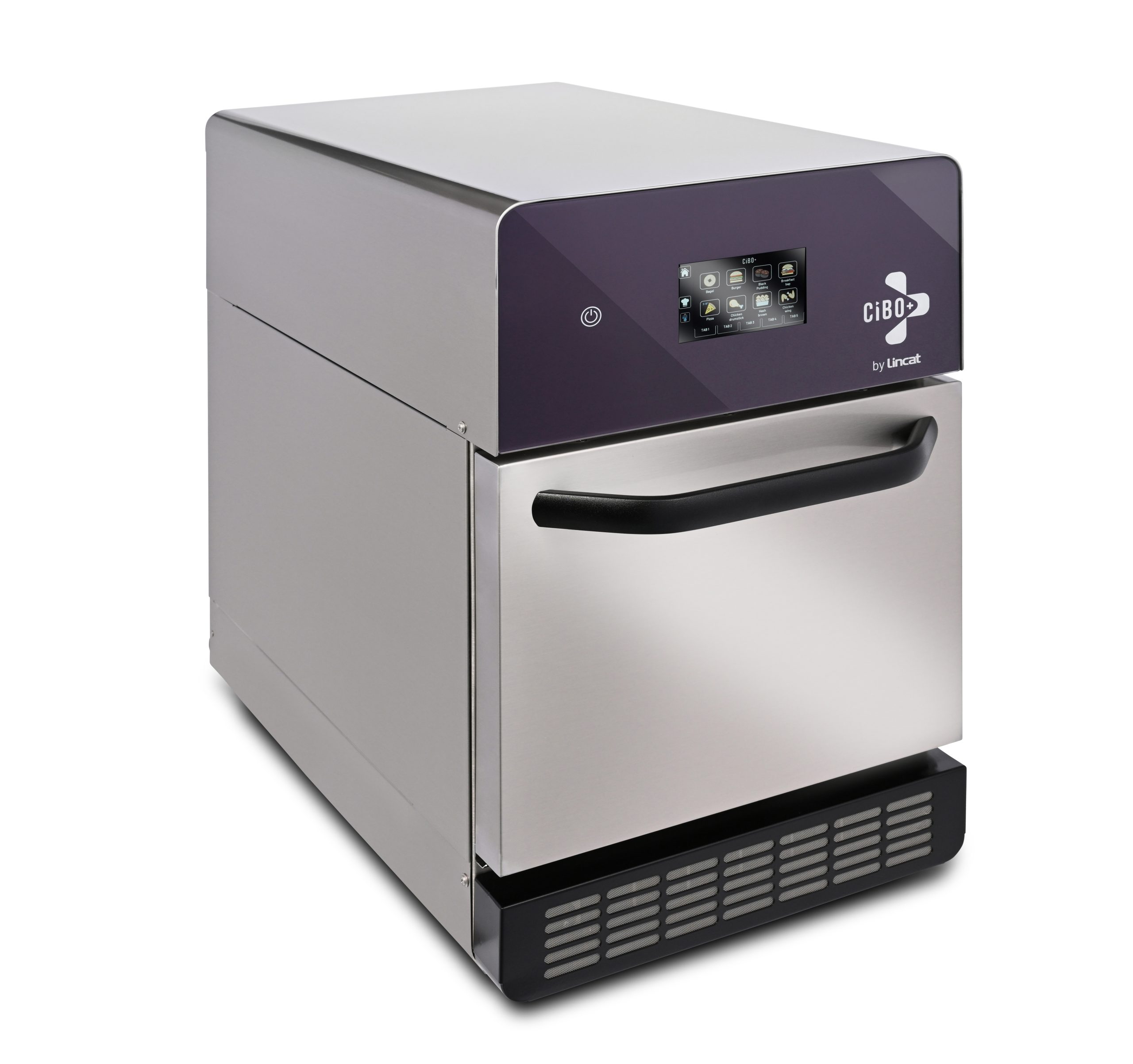The CiBOPLUS/P by Lincat is a innovative countertop oven, colour themed in Purple, equipped with ‘Tri-Heat Technology,’ integrating Microwave, TurboAir, and ContactBase functionalities. This advanced system gives you high-speed cooking while preserving the food’s quality. Enjoy consistent high-quality cooking for every order. Simply select any of the 40 menu options on the QPad touch screen, and let the oven handle the rest. With a compact footprint of 395mm x 665mm the CiBOPLUS can fit anywhere and yet spacious enough to accommodate a 12″ pizza. Experience hassle-free setup as CiBOPLUS requires no installation, simply plug in and start cooking. Make the most of unconventional spaces with ventless technology. Stay protected with antimicrobial safeguards, minimising the transmission of viruses through touch points. Tailor the arrangement of menu items or recipe settings effortlessly to match your business needs with Touch & Change , just touch to adjust, it’s easy.