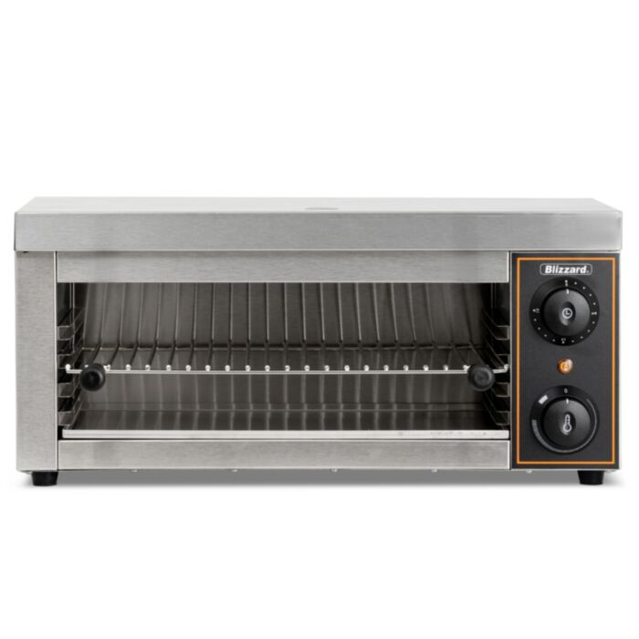 The Blizzard BSG1 salamander grill gives chefs a flexible solution for toasting, grilling and heating a wide variety of dishes. Its design suits both wall-mounted and countertop use, making it ideal for busy cafés, restaurants and catering kitchens. The stainless steel construction provides a durable and hygienic surface that stands up to daily use while remaining easy to clean. Its sleek finish complements any professional kitchen layout.