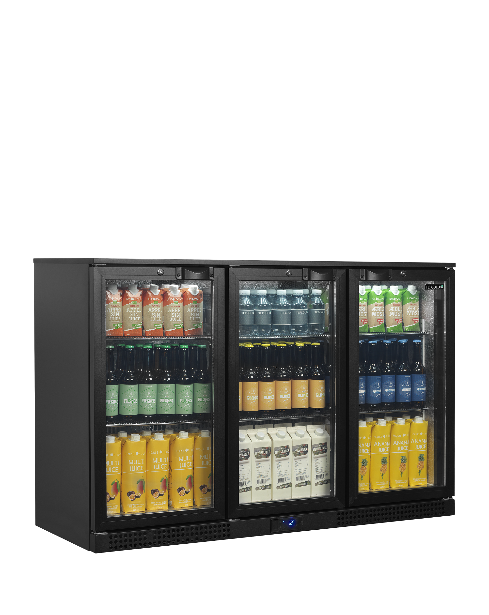 A premium triple door back bar fridge. A versatile fan assisted cooler great for cooling beer, cider, wine or soft drinks. With LED lighting as standard helps to keep your energy bill down, there are also wine shelves available if required.
