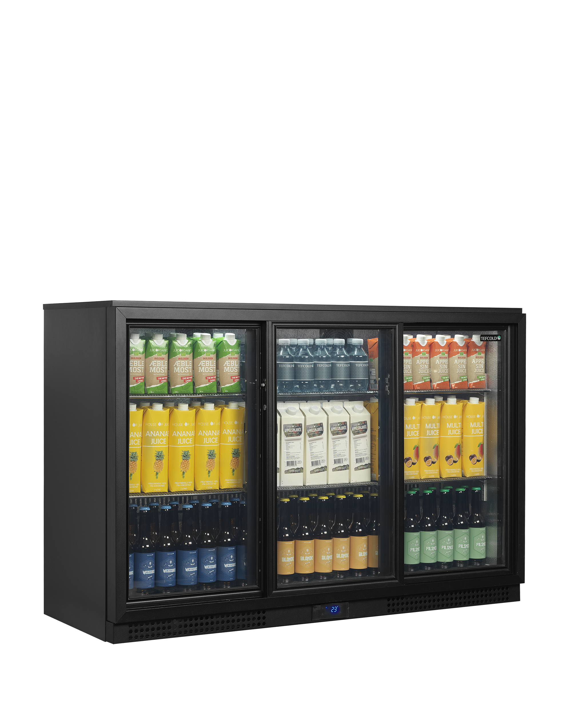 A premium triple door back bar fridge. A versatile fan assisted cooler great for cooling beer, cider, wine or soft drinks. With LED lighting as standard helps to keep your energy bill down, there are also wine shelves available if required.