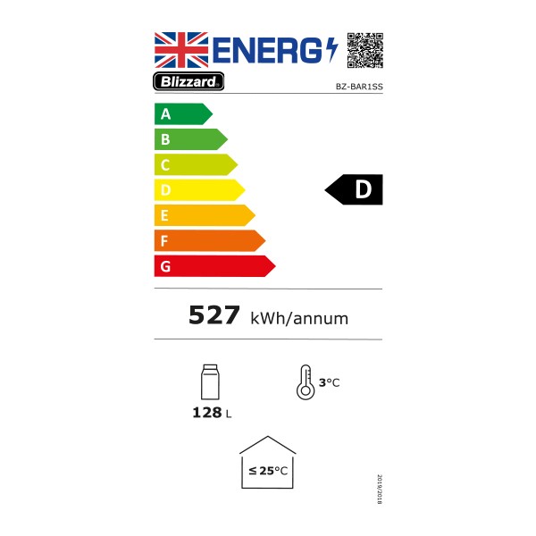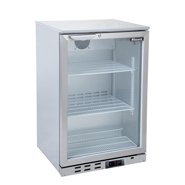 The Blizzard BAR1SS undercounter bottle cabinet is a high capacity single door cooler, developed for busy bars and pubs. Internal LED lighting maximises product display and with a 135 bottle capacity this fridge is a great option for any pub, bar or restaurant. This cabinet has a stainless steel door, painted silver top and sides and an aluminium stippled interior. Fitted with a high quality compressor and an efficient fan assisted cooling system this appliance offers fast temperature pull down times at busy periods when staff are having to constantly open and close the door to access product. With two adjustable shelves, adjustable feet for levelling and a lock fitted as standard this is a must have product for any licenced venue.