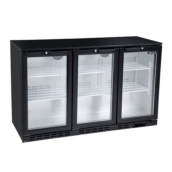 The Blizzard BAR3 undercounter bottle cabinet is a high capacity triple door cooler, developed for busy bar environments. Internal LED lighting maximises product display and with a 338 bottle capacity this fridge is a great option for any pub, bar or club. Fitted with a high quality compressor and an efficient fan assisted cooling system this appliance offers fast temperature pull down times at busy periods when staff are having to constantly open and close the doors to access product. With six adjustable shelves, adjustable feet for leveling and locks fitted to all doors this is a must have product for any licenced venue.
