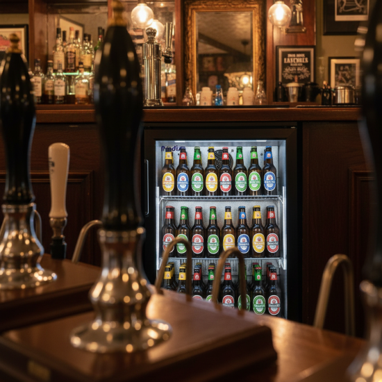 Alongside visual appeal, this cooler delivers dependable temperature control. The fan-assisted cooling system maintains temperatures between +2°C and +10°C. Consequently, beverages stay at the optimal serving temperature throughout opening hours. Furthermore, consistent airflow ensures even cooling throughout all shelf levels.