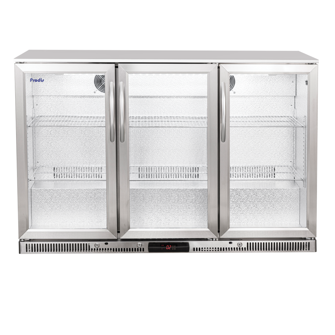 The Prodis NT3ST-LE Stainless Steel Low Energy Triple Hinged Door Bottle Cooler gives busy bars and restaurants the storage, visibility and performance needed for fast-paced service. It combines a premium stainless steel exterior with a practical under-counter design, so you can upgrade your back bar without losing valuable workspace. Moreover, the triple door layout creates a wide, eye-catching display that encourages customers to buy more bottled drinks.