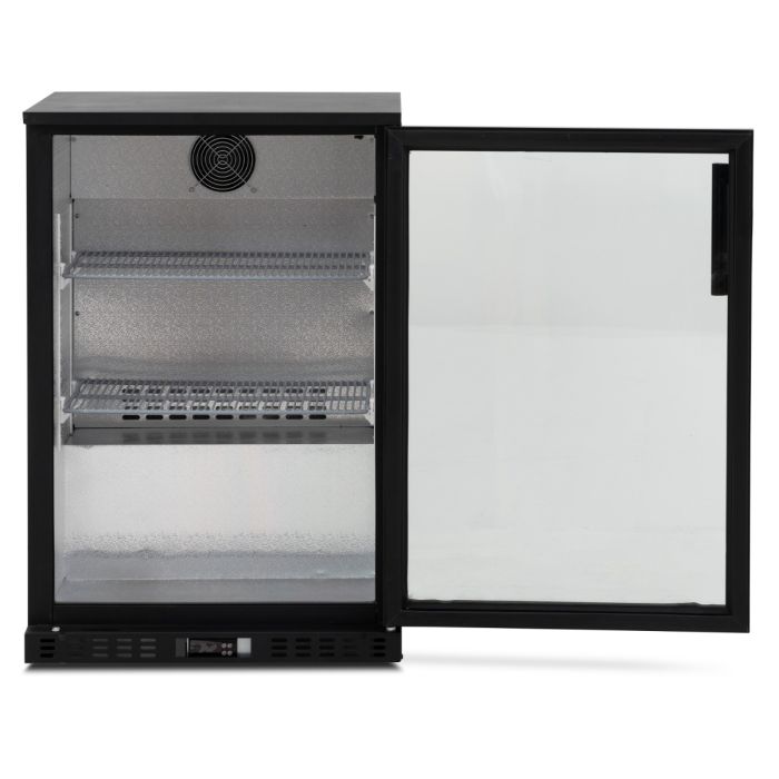 If you’re in search of a simple and functional bottle coolers, look no further than the Koldbox KBC1 single door under-counter bottle cabinet. This option stands out as the perfect selection for budget-conscious shoppers. With its sleek black exterior and textured aluminium interior, it can easily hold up to 135 bottles, seamlessly fitting into any back bar arrangement. This stylish and compact beer fridge will effectively highlight your top-selling bottled beers and canned beverages, thanks to its LED illumination strip. Designed for bustling establishments where demand is high, these durable cabinets are constructed with powerful compressors, a lockable double-glazed self-closing hinged door, fan-assisted cooling for rapid temperature reduction, a digital controller with a temperature display, and two adjustable shelves that provide flexible drink storage. All these features make this back bar cooler an excellent option for any bar, pub, or club.