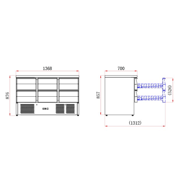 Dimensions (H x W x D): 876 x 1368 x 700mm