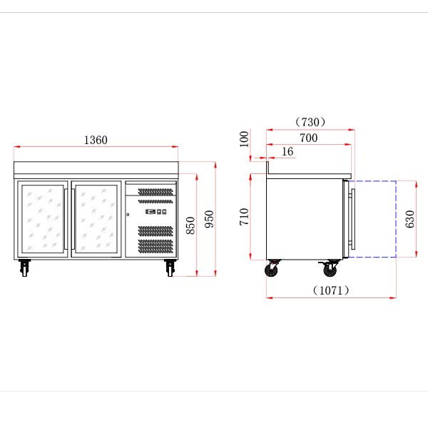 The Blizzard HBC2CR two glass door counter refrigerator with 100mm upstand is designed for use in commercial kitchens and a popular choice for pubs and restaurants. This counter refrigerator is manufactured from high grade stainless steel, both internally & externally, this space saving prep counter refrigerator, features a digital Dixel controller with temperature display, heavy duty castors for easy manoeuvravility, easy to fit replaceable door gaskets, self closing glass doors, and 2 adjustable GN1/1 shelves for flexible food storage, making this a great choice for any professional kitchen and covered with a 3 year warranty.