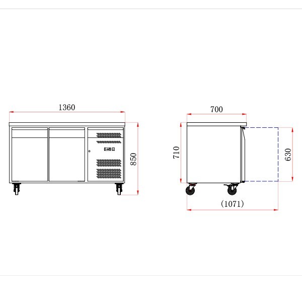 The Blizzard HBC2 two door counter refrigerator is designed for use in commercial kitchens and a popular choice for pubs and restaurants. This counter refrigerator is manufactured from high grade stainless steel, both internally & externally, this space saving prep counter refrigerator, features a digital Dixel controller with temperature display, heavy duty castors for easy manoeuvravility, easy to fit replaceable door gaskets, self closing doors, and 2 adjustable GN1/1 shelves for flexible food storage, making this a great choice for any professional kitchen and covered with a 3 year warranty.