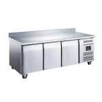 The Blizzard HBC3 three door counter refrigerator with 100mm upstand is designed for use in commercial kitchens and a popular choice for pubs and restaurants. Manufactured from high grade stainless steel, both internally & externally, this space saving prep counter refrigerator, features a digital Dixel controller with temperature display, heavy duty castors for easy manoeuvravility, easy to fit replaceable door gaskets, self closing doors, and 3 adjustable GN1/1 shelves for flexible food storage, making this a great choice for any professional kitchen and covered with a 3 year warranty.
