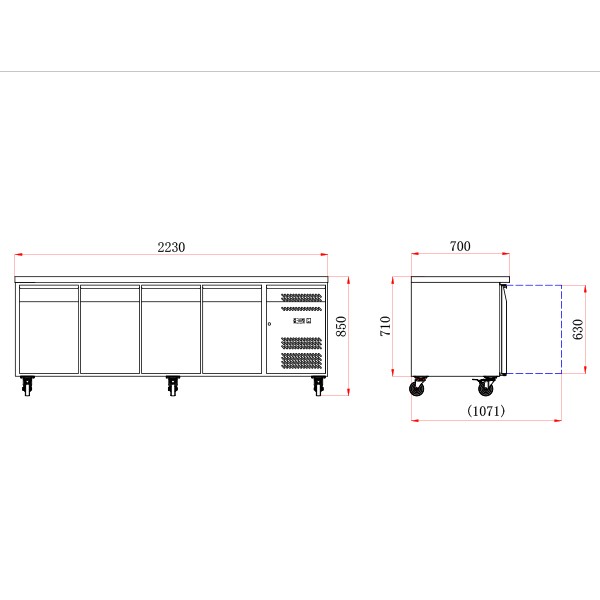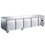The Blizzard HBC4NU 4-door GN1/1 counter without an upstand refrigerator is designed for commercial kitchens and is a popular choice for restaurants, care homes, schools & hospitals. Manufactured from high-grade stainless steel, both internally & externally, this space-saving preparation counter refrigerator, features a digital Dixel controller with temperature display, heavy-duty castors for easy maneuverability, quick-to-fit replaceable door gaskets, self-closing doors, and 4 adjustable shelves for flexible food storage, making this a great choice for any professional kitchen and covered with a 3-year warranty.
