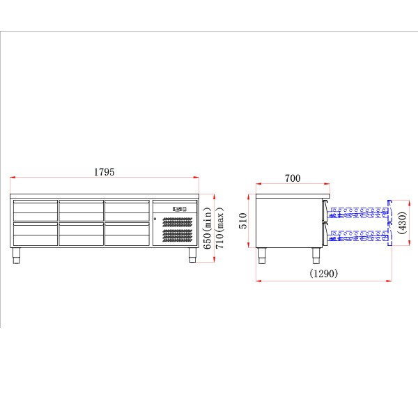 Dimensions (H x W x D): 650 x 1795 x 700mm