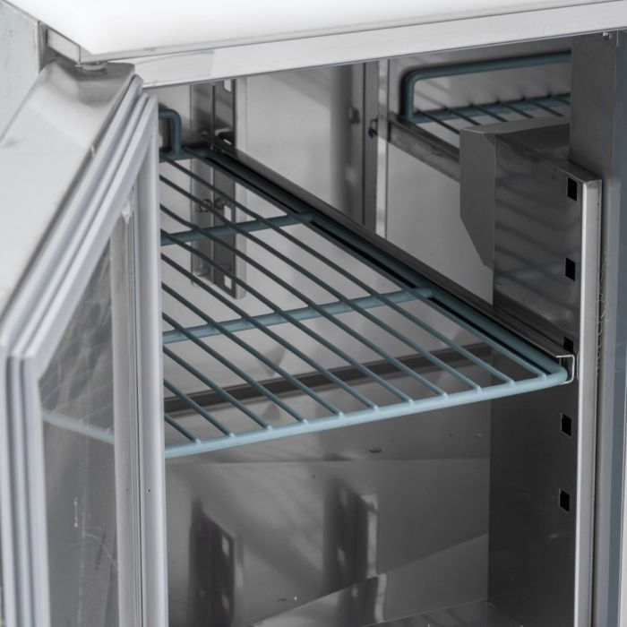 Above the main body of the unit, a large open-top gastronorm well increases functionality. Designed to hold multiple containers, this well allows chefs to organise ingredients neatly and keep them accessible at all times. The well also includes a hinged cover that protects the contents when not in use. With this feature, ingredients remain fresh and ready for preparation whenever needed.