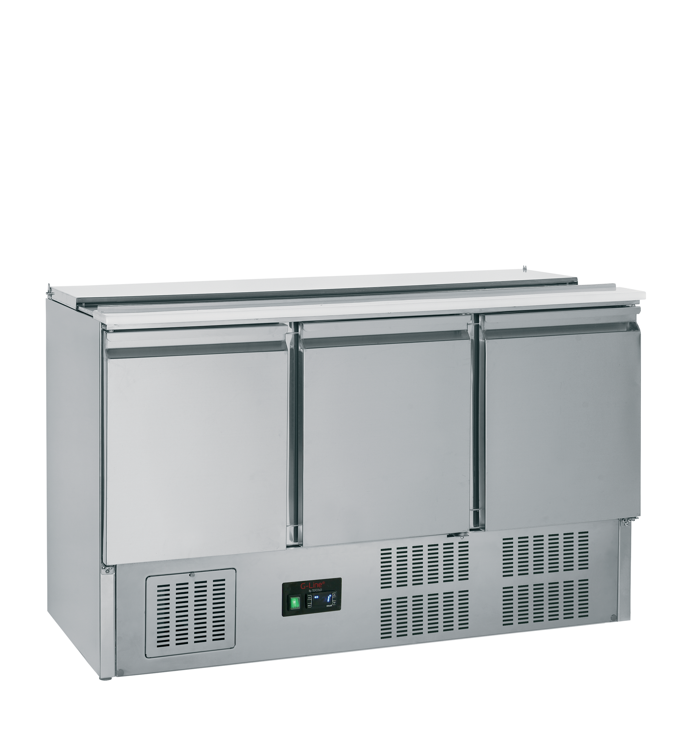 Streamline your service with the GS365 Gastronorm Saladette Counter. This all-in-one preparation hub features a built-in top well that accommodates a variety of GN pan configurations (up to 150mm deep), protected by a sturdy hinged stainless steel lid. Below the durable polypropylene chopping board, three GN1/1 compatible cupboards provide 368 litres of chilled storage for easy refills. Designed for high-speed environments, the GS365 ensures every ingredient is fresh, organized, and right where you need it.