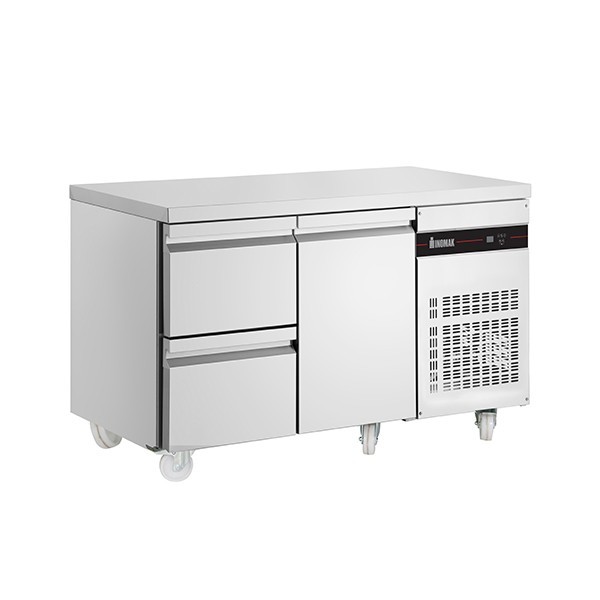 The Inomak PN29-HC 1/1 gastronorm counter refrigerator, has 1 self-closing door and 2 drawers that accept GN1/1 trays. Designed for use in commercial kitchens and a popular choice in restaurants, cafes, nursing homes, schools and hospitals this preparation counter refrigerator is manufactured from high quality grade 304 stainless steel, both internally & externally including the back. This space saving prep counter features a digital controller with temperature display, heavy-duty castors for easy manoeuvrability, quick to fit replaceable door gasket and 1 adjustable GN1/1 shelf inthe door section for flexible food storage, making this a great choice for any professional kitchen and covered with a 3 year warranty.